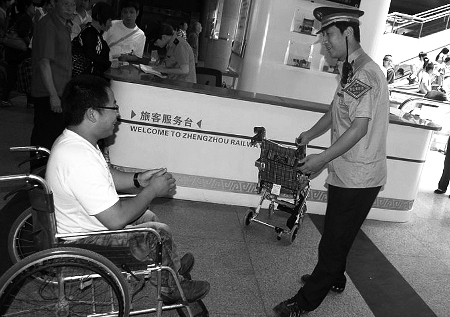 大河報(bào)訊 昨日上午,鄭州下肢殘障小伙王金雷帶著部分殘障人士湊錢買來的專用輪椅,欲送給鄭州火車站,希望車站把該輪椅作為公用設(shè)備,更好地為殘障人服務(wù)。對(duì)此,車站客運(yùn)科馮科長(zhǎng)代表鄭州火車站買下了這輛輪椅。同時(shí),站方表示,5月20日世界助殘日之后,鄭州火車站為進(jìn)一步改進(jìn)和完善殘障人服務(wù)措施,將購(gòu)置可以直接將殘障旅客送進(jìn)車廂的專用輪椅。每個(gè)進(jìn)口配設(shè)殘障人專用輪椅后,在鄭州火車站乘車的殘障人士可直接進(jìn)入車廂,而以往的殘障旅客只能到站臺(tái)。 線索提供 李方