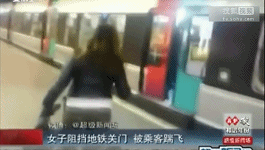 實(shí)拍女子阻擋地鐵關(guān)門 被車內(nèi)乘客一腳踹飛