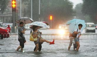 安陽(yáng)暴雨:女孩倒地被沖著走