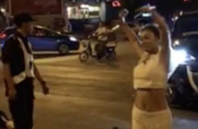 女子撞車后當警察面翩翩起舞