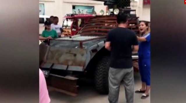 戰(zhàn)車(chē)被刮 悍妻罰夫跪地道歉
