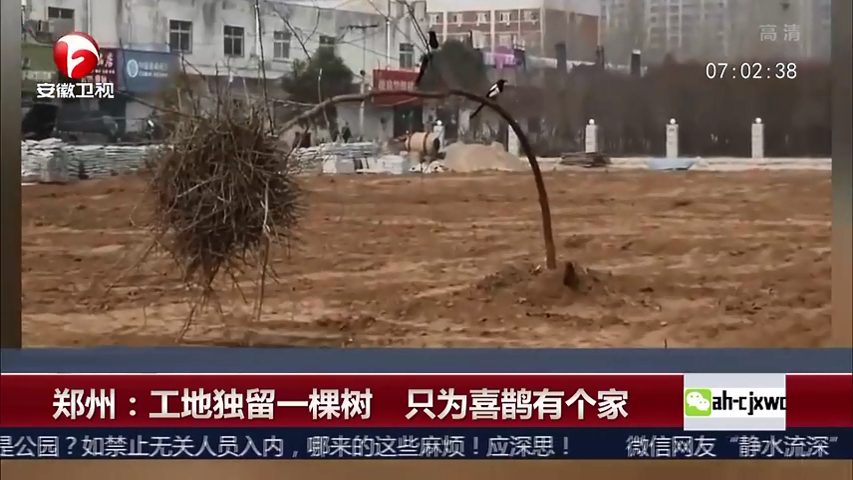 工地獨(dú)留棵樹 只為喜鵲有個家