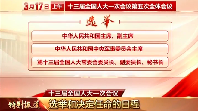 十三屆全國人大一次會議 選舉和決定任命的日程