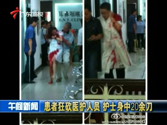 9月3日上午,一名43歲的男子在深圳鵬程醫(yī)院候診時突然拔出菜刀,將一名耳鼻喉科醫(yī)生砍傷后,再傷一名女導(dǎo)醫(yī)和一名保安,隨后挾持一名護(hù)士狂砍,護(hù)士身中20余刀。目前,4人均被送醫(yī)院治療,暫無生命危險(xiǎn)。據(jù)了解,當(dāng)事男子曾在該醫(yī)院找當(dāng)事醫(yī)生看過鼻炎,因治療效果不明顯,懷恨在心,昨日攜帶4把刀到醫(yī)院報(bào)復(fù),目前其已被警方刑事拘留。