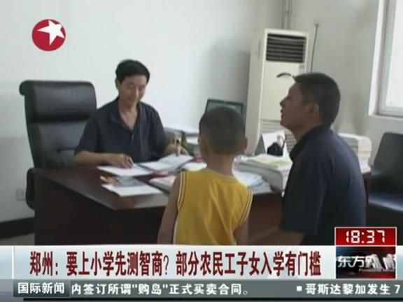 孩子要想接受義務(wù)教育,除了要辦齊各種手續(xù),還要進(jìn)行智商測驗(yàn),開具醫(yī)院相關(guān)證明--這是來自河南南陽鄧州農(nóng)民工魏雙恒的8歲兒子航航在鄭州市建設(shè)路三小求學(xué)時遭遇的難題。