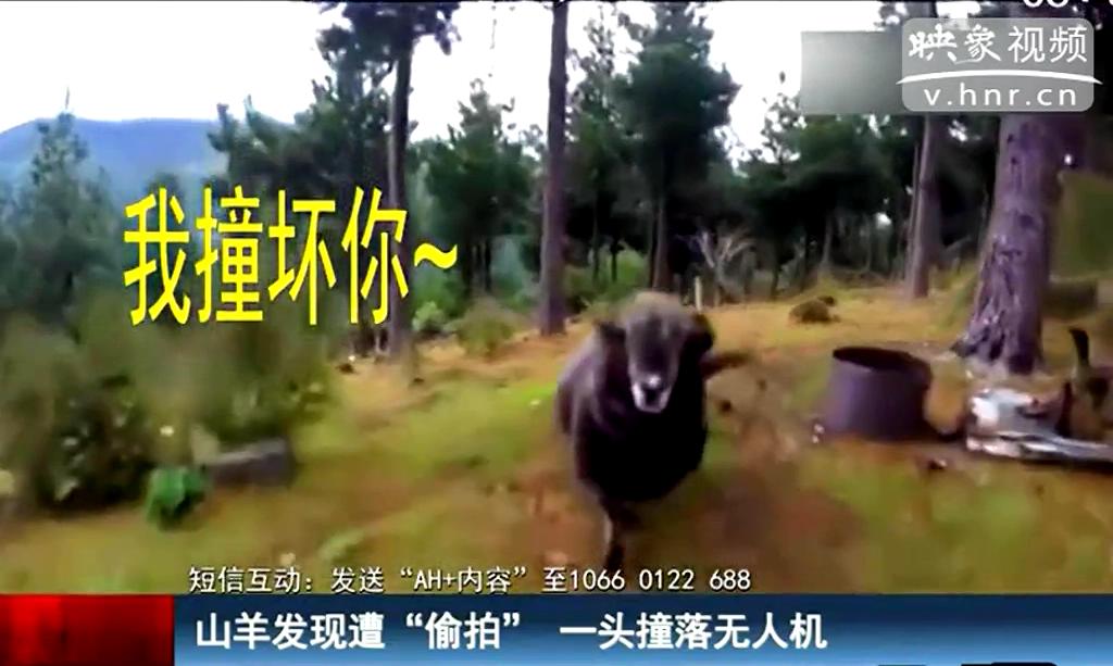 山羊發(fā)現(xiàn)遭“偷拍” 一頭撞落無人機