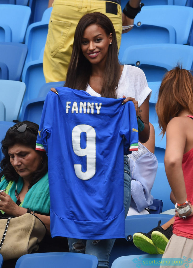 北京時(shí)間6月24i,小組賽最后一輪意大利VS烏拉圭。巴洛特利女友又來到現(xiàn)場觀戰(zhàn),她染了頭發(fā),還展示了9號(hào)特制球衣。布馮嬌妻也來到現(xiàn)場,還帶來了布馮的兩個(gè)愛子。圖為巴洛特利未婚妻舉9號(hào)特制球衣