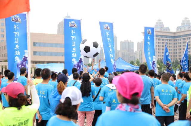 舞臺區(qū)化身足球?qū)氊惱怖碴牭恼故九_,動感時尚的舞步與潮流健身操結(jié)合,引得群眾積極互動。更有樂隊演出環(huán)節(jié),為奔跑的新鄉(xiāng)市民獻(xiàn)上一首勝利贊歌。
