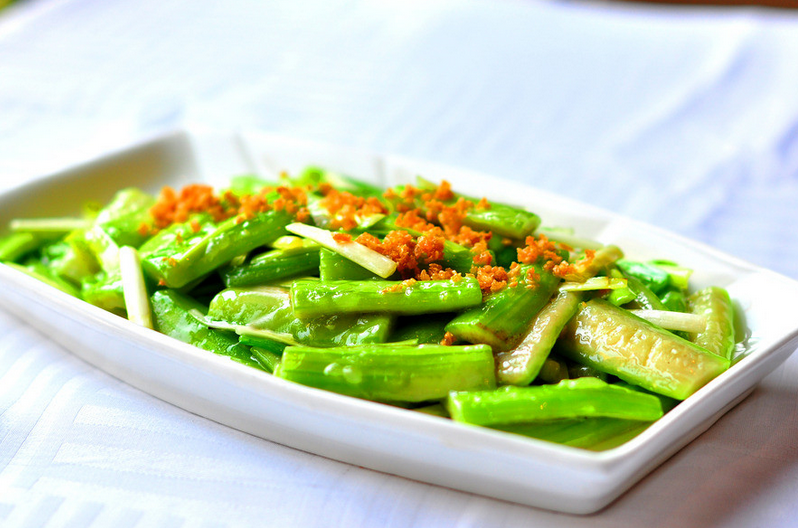 苦瓜,又稱涼瓜,是用來清暑去熱的蔬菜??喙弦怨先狻⒐先课犊喽妹?。然而,苦瓜若與其他食物一起煮、炒,從不會把苦味傳給其他食物,故有“君子菜”的美名。