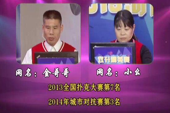 今天將要進(jìn)行的是2015河南省電視雙升精英賽,這也是繼2014城市對(duì)抗賽之后進(jìn)行的個(gè)人競技比賽,所有參賽選手,都是各地市參加城市對(duì)抗賽的優(yōu)秀牌手,今天進(jìn)行的是上半?yún)^(qū)第1輪的第場比賽,是由新鄉(xiāng)推選的“溪水”和“雙升找我”對(duì)陣來自濟(jì)源推選的“小幺”和“金哥哥”。今天雙方選手都是信心百倍,誓要拿系第一場,究竟結(jié)果如何呢?今晚21點(diǎn)40分《雙升英雄會(huì)》為您揭曉答案!