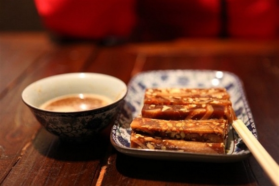 北京人的年飯里,有一道不得不提的傳統(tǒng)菜品——“豆兒醬”,這道菜對于老北京人來說還是家喻戶曉的?!岸箖横u”是一種由肉皮、豆腐干、黃豆、青豆、水芥做成的涼菜,清爽可口,用來佐酒開胃,再合適不過了。