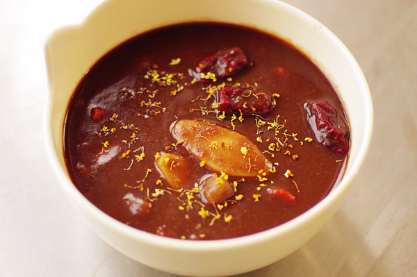 酒釀紅豆年糕可以當(dāng)主食,也可以當(dāng)甜品,冬季的早晨,來(lái)碗潤(rùn)心潤(rùn)肺都好。