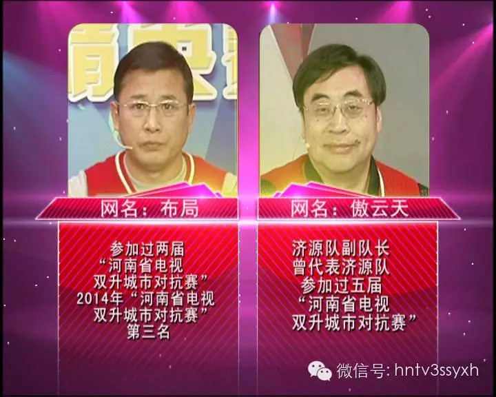 今天將要進(jìn)行的是2015河南省電視雙升精英賽下半?yún)^(qū)第2輪敗者組的第2場比賽,由第一輪失利的商丘精英豫東牌迷和平常心對(duì)決濟(jì)源精英布局和傲云天。