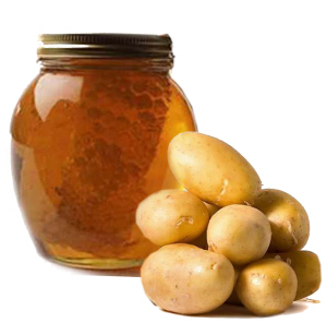 做法:先將土豆用榨汁機(jī)榨出汁液,再把土豆汁放入鍋中煎熬至粘稠,然后放入一倍于土豆汁的蜂蜜,再煎熬至粘稠,停火,待冷,裝瓶備用。