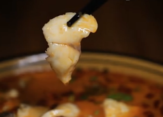夾起一塊魚肉,肉質(zhì)緊實(shí),邊緣微微卷起,入口一嘗,魚肉滑爽細(xì)嫩,由于大廚還加入了酸菜,所以麻辣的湯汁中還帶著幾分酸爽,非常的開胃。