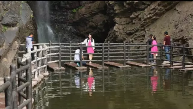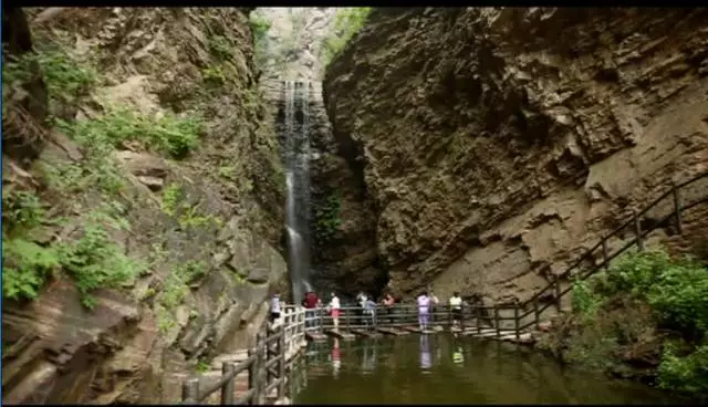 瀑布高達100余米,從井口水簾洞落下,形成了自然奇觀,漫步在棧道之上,便有穿云破霧之感。在這里,遠望可領略高山整體氣勢之壯美,近觀可品察,山石樹木形色質(zhì)紋之奇秀。