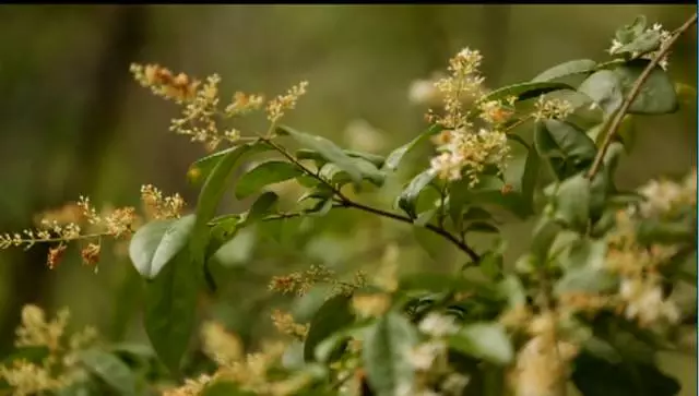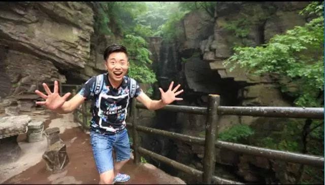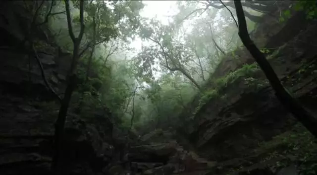 看到這棵樹了沒有,據(jù)說這個葉子有個奇特的味道,是一股橘子味,在這山上還有很多珍貴野生的樹種,漫山遍野一股清香襲來,再往前走就可以看到天井了,天井四面峭壁,犬牙交錯高深莫測。