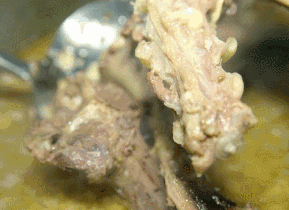 將羊肉和羊骨放入鍋中一起熬制成鮮香的羊湯,將大鍋里熬好的羊湯放入小鍋中,加入木耳粉絲黃花菜蔥花,煮的軟爛的羊肉切成片狀,放入鍋中一起熬制,再放一點(diǎn)羊油辣椒用筷子輕輕一攪,羊湯的香味混著辣椒的焦香,這香味讓人無法拒絕,相信這地道的登封燴羊肉一定能俘獲韓寒的胃。