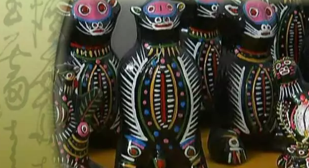 原來(lái)泥泥狗就是按照伏羲女媧捏人的方法,用泥制造。傳說(shuō)伏羲是人頭狗身,“伏”字便是“人”與“犬”兩字合成,所以泥泥狗造型都是人頭獸身。多達(dá)兩百多種造型,唯一的共同點(diǎn)是,他么全部以黑為基調(diào),另用青、赤、白、黃繪制。泥泥狗為什么以黑色做底、五色點(diǎn)化呢?如此受歡迎的泥泥狗是如何制作的?他們的造型究竟是天馬行空還是有據(jù)可查呢?
