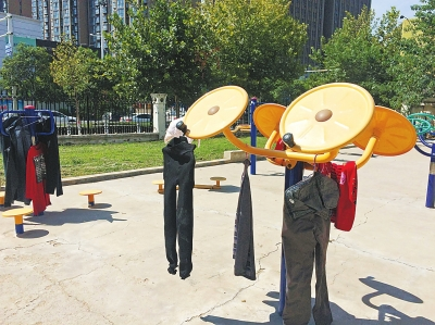 “一有太陽,公共健身器材上就有人晾衣服,想鍛煉一下都成了難事。”家住金水區(qū)未來路附近的廣發(fā)花園劉先生致電本報(bào),本來小區(qū)內(nèi)健身器材是讓大家鍛煉身體的,可是,卻成了居民的“晾曬寶地”。