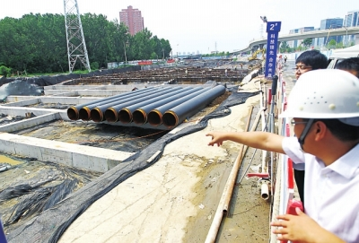 昨天,記者來到鄭州市東三環(huán)(107輔道)快速化工程鄭州東站附近的施工點(diǎn),金水東路到商鼎路之間,正在建一條寬37米的隧道(圖中前方為南方)。