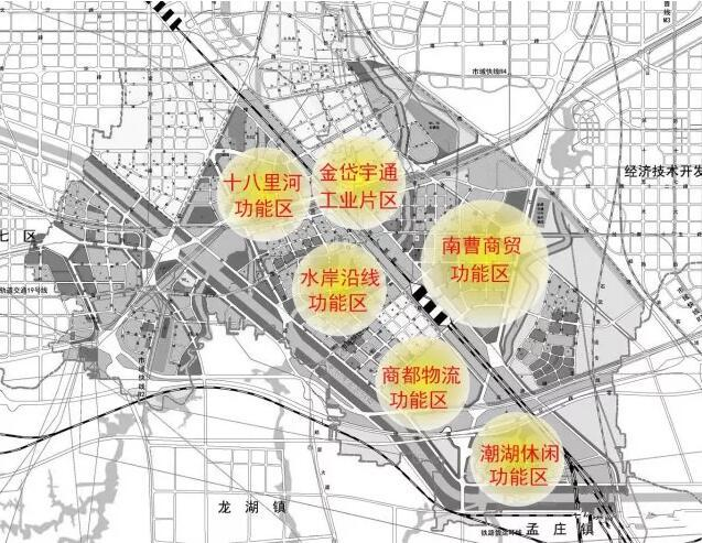 商都新區(qū)沒(méi)有單一明確的功能劃分,整個(gè)區(qū)域從北到南依次分為六大功能區(qū),包括包括金岱宇通工業(yè)片區(qū),十八里河功能區(qū),水岸沿線功能區(qū),商都物流園功能區(qū),南曹商貿(mào)功能區(qū)和潮湖休閑功能區(qū)。