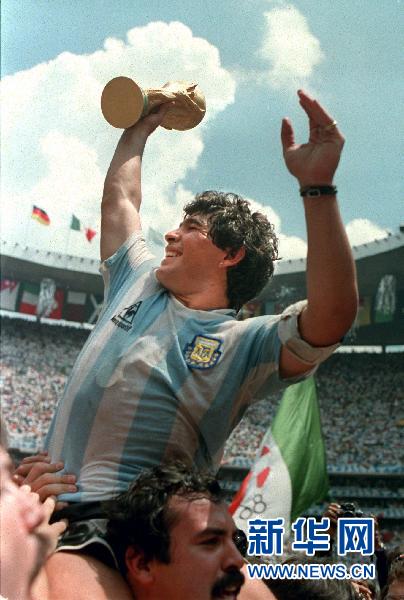 圖為1986年6月29日,馬拉多納高舉冠軍獎(jiǎng)杯慶祝勝利。在1986年墨西哥世界杯決賽中,阿根廷隊(duì)以3比2戰(zhàn)勝聯(lián)邦德國(guó)隊(duì)奪得冠軍。新華社發(fā)
