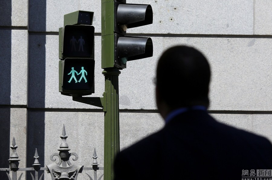 西班牙現(xiàn)同性戀紅綠燈 同性伴侶牽手過(guò)街