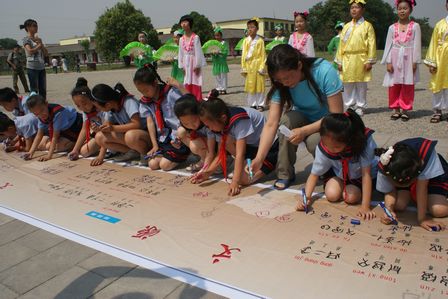 近日,由安陽殷墟管理處、殷都區(qū)甲骨文少兒學(xué)校主辦的少兒甲骨文書法比賽在殷墟管宮殿宗廟遺址前廣場舉行。這一活動的主題為"傳承甲骨文明,夸家鄉(xiāng)安陽",中國小屯教育集團(tuán)、安陽實(shí)驗(yàn)小學(xué)等學(xué)校的100余明愛好甲骨文書法的學(xué)生參加了這一活動。