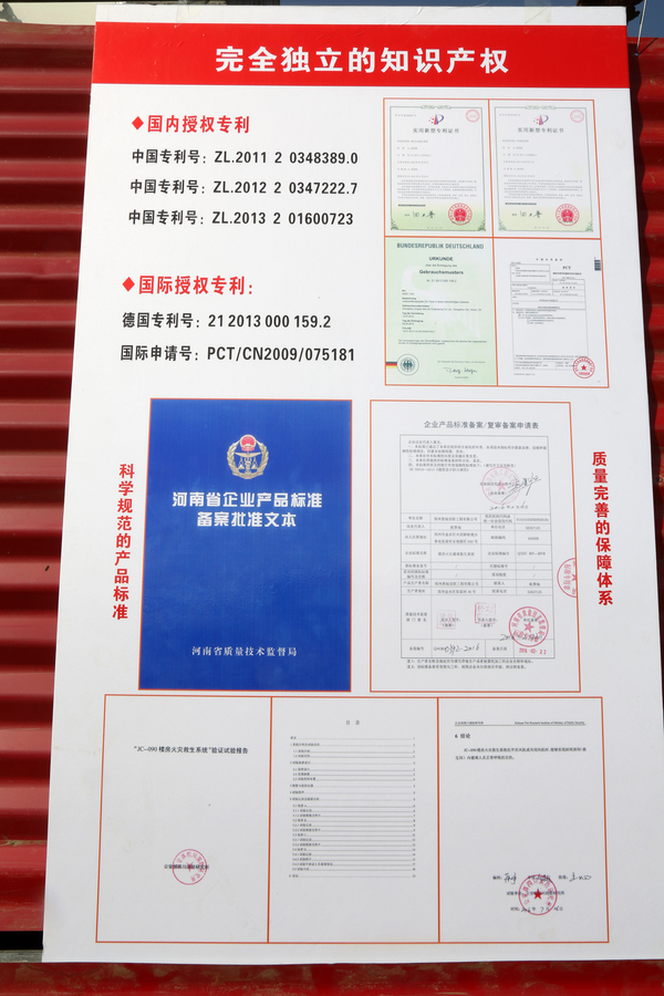 這一套救生系統(tǒng),不須耗能、不用維護(hù)、無(wú)噪音、無(wú)污染,使用壽命與建筑物同步。經(jīng)反復(fù)試驗(yàn)、改進(jìn),目前已經(jīng)獲得了國(guó)家專利。
