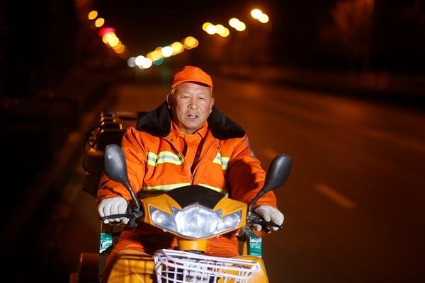 2017年1月12日,04:30,此時(shí)室外溫度-2℃ 。62歲的環(huán)衛(wèi)工人唐師傅穿著黃色環(huán)衛(wèi)工作服,帶上清掃工具,騎上電瓶車,準(zhǔn)備出門,開(kāi)始一天的工作。